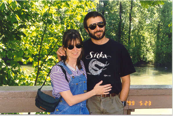 Us after a refreshing stroll along the river just two blocks from downtown Corvallis.