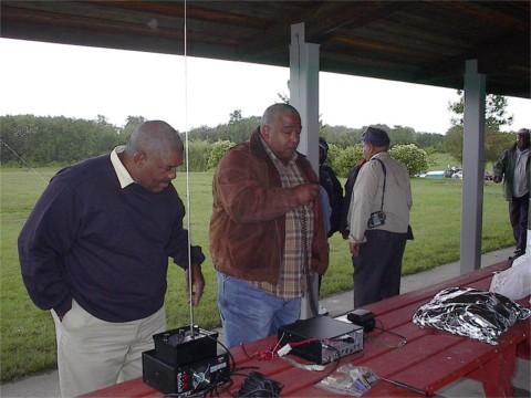 Horace (KC3AE) is trying to decide if he should grab Rip's food and run. Meanwhile Rip (N4AWU) is grinning with his hand ready to defend the food to the death!