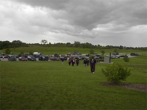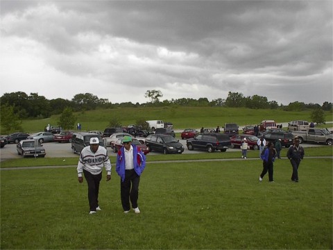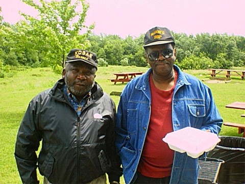 Mitch, KB8QT and Troy, N8AWO meandering up the hill to the pavilion for the GREAT food at the picnic.